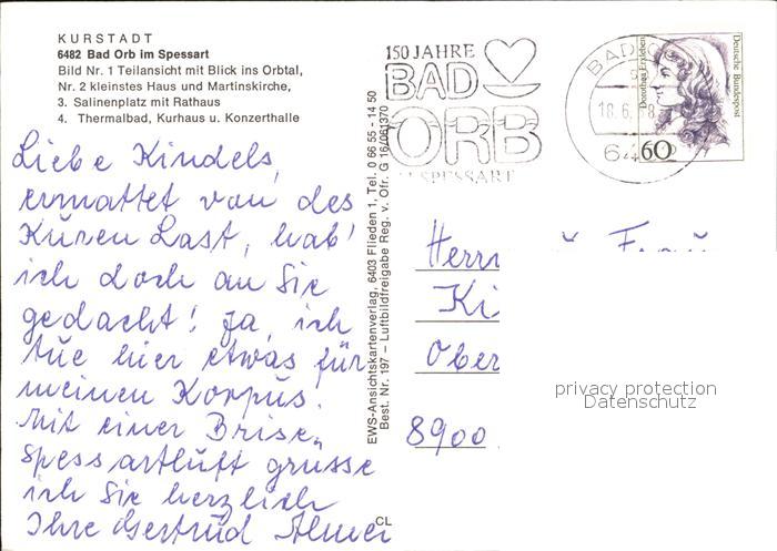 alte Postkarte Bad Orb Fliegeraufnahme Salinenplatz Kurhaus Kleinstes-Haus postalisch gelaufen Erhaltung siehe scans