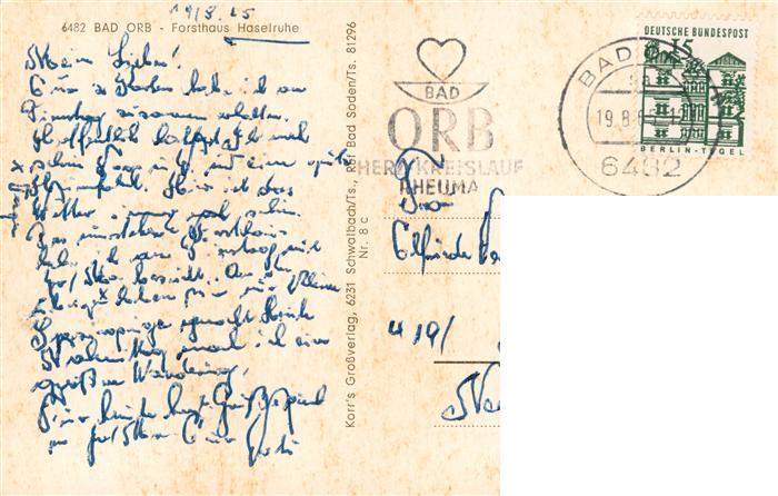 73914595 alte Postkarte Bad Orb Forsthaus Haselruhe postalisch gelaufen Erhaltung siehe scans [WerneD78] KatCode: 11110006435001
