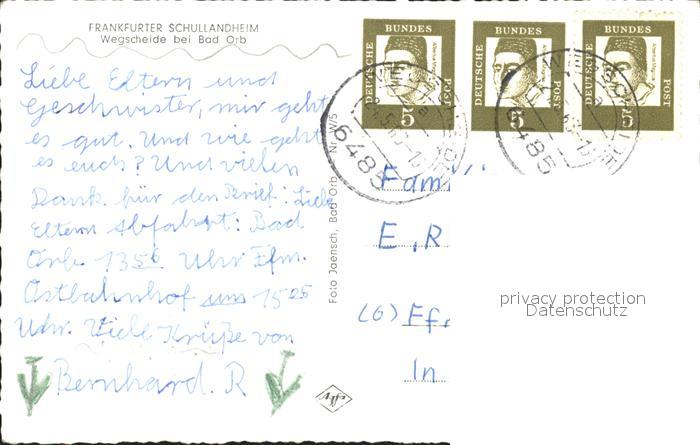 72120781 alte Postkarte Bad Orb Frankfurter Schullandheim Kinderdorf Wegscheide postalisch gelaufen Erhaltung siehe scans KatCode: 11110006435001