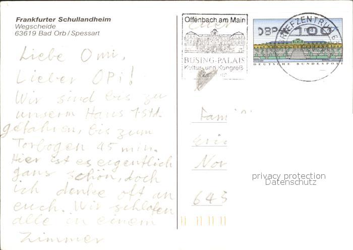 72439203 alte Postkarte Bad Orb Frankfurter Schullandheim Wegscheide Fliegeraufnahme postalisch gelaufen Erhaltung siehe scans KatCode: 11110006435001