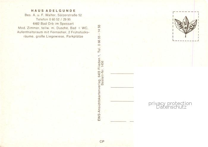 73791124 Bad Orb Gaestehaus Pension Haus Adelgunde postalisch nicht gelaufen Erhaltung siehe scans [FriedD77] KatCode: 11110006435001