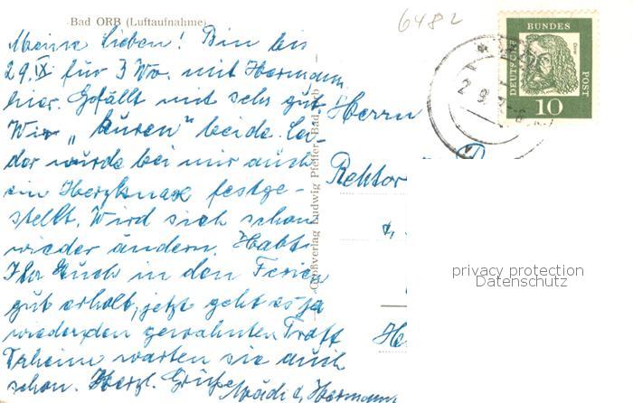 73764775 alte Postkarte Bad Orb Gradierwerk postalisch gelaufen Fliegeraufnahme Erhaltung siehe scans [FriedD77] KatCode: 11110006435001