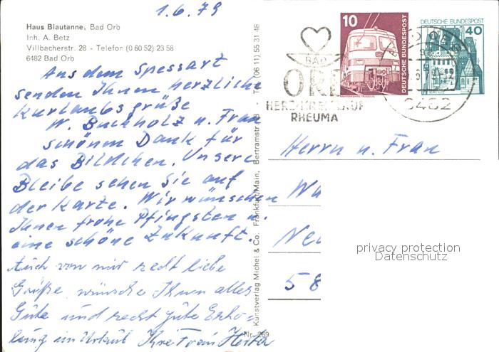 72568415 alte Postkarte Bad Orb Haus Blautanne postalisch gelaufen Erhaltung siehe scans [KathaD79] KatCode: 11110006435001