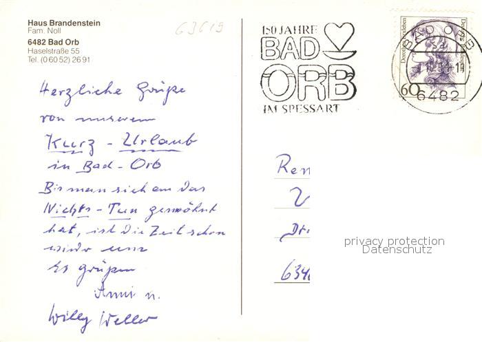 73101612 alte Postkarte Bad Orb Haus Brandenstein postalisch gelaufen Erhaltung siehe scans [WerneD78] KatCode: 11110006435001
