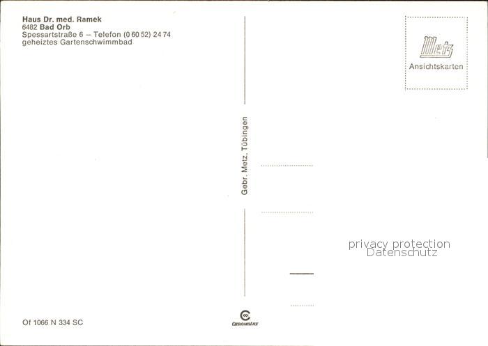 72291598 Bad Orb Haus Dr. med. Ramek postalisch nicht gelaufen Erhaltung siehe scans KatCode: 11110006435001