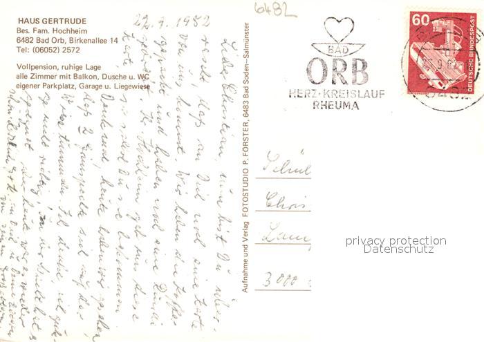 73047416 alte Postkarte Bad Orb Haus Gertraude Terrasse Gastraeume postalisch gelaufen Erhaltung siehe scans [WerneD78] KatCode: 11110006435001