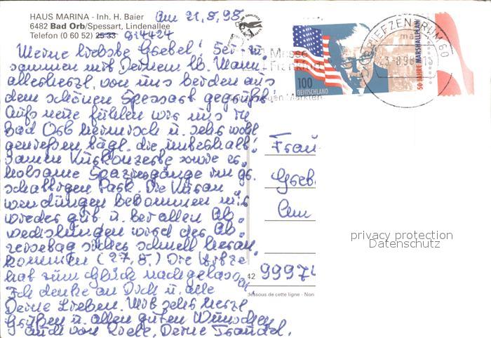 71926720 alte Postkarte Bad Orb Haus Marina postalisch gelaufen Erhaltung siehe scans KatCode: 11110006435001