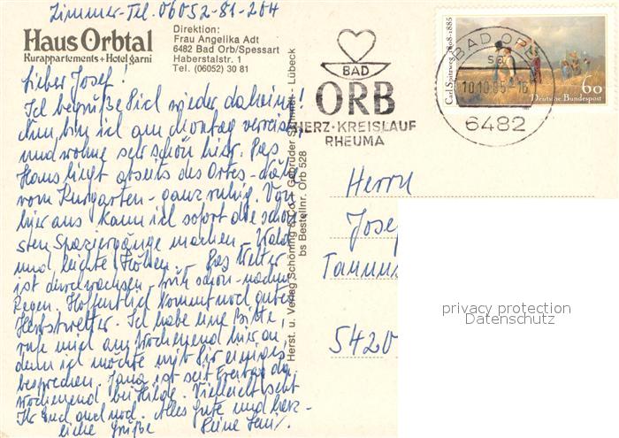 73721285 alte Postkarte Bad Orb Haus Orbtal Kurappartements Gastraeume Hallenbad postalisch gelaufen Erhaltung siehe scans [WerneD78] KatCode: 11110006435001