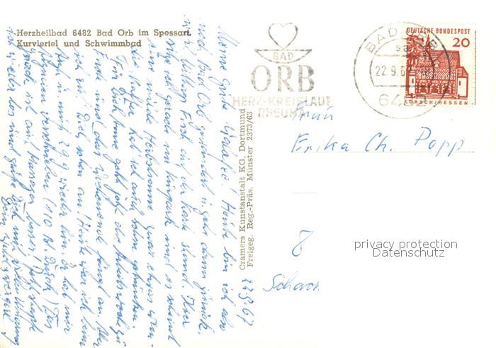 73209485 alte Postkarte Bad Orb Heilbad Kurviertel Schwimmbad Fliegeraufnahme postalisch gelaufen Erhaltung siehe scans [FriedD77] KatCode: 11110006435001