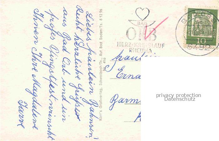 74153813 alte Postkarte BAD ORB Hessen Hotel Weisses Ross postalisch gelaufen Erhaltung siehe scans [WerneD78] KatCode: 11110006435001