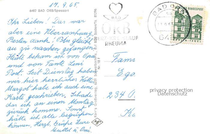 74153338 alte Postkarte BAD ORB Hessen Kurhaus Hotel weisses Ross Fachwerk Kurgarten Sanatorium Saline Bahnhof postalisch gelaufen Erhaltung siehe scans [FriedD77] KatCode: 11110006435001