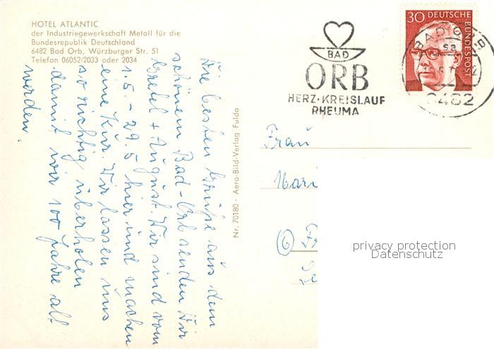 73864648 alte Postkarte Bad Orb Hotel Atlantic der IG Metall postalisch gelaufen Erhaltung siehe scans [WerneD78] KatCode: 11110006435001