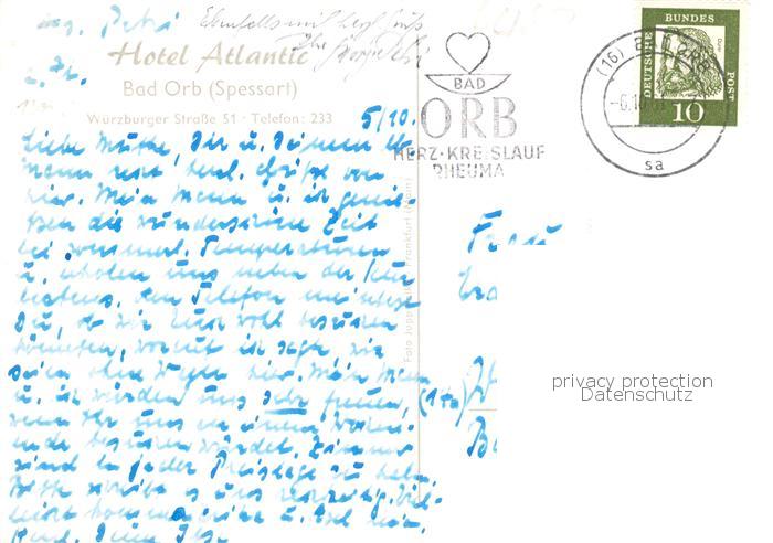 73867958 alte Postkarte Bad Orb Hotel Atlantic postalisch gelaufen Erhaltung siehe scans [WerneD78] KatCode: 11110006435001