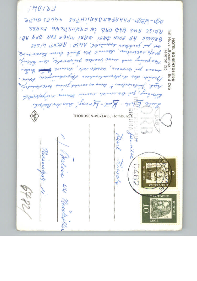 31145424 Bad Orb Hotel Hohenzollern postalisch nicht gelaufen KatCode: