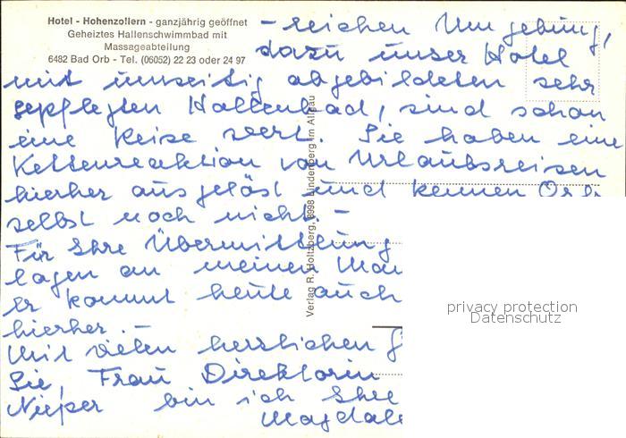 72527240 Bad Orb Hotel Hohenzollern Hallenbad postalisch nicht gelaufen Erhaltung siehe scans KatCode: 11110006435001