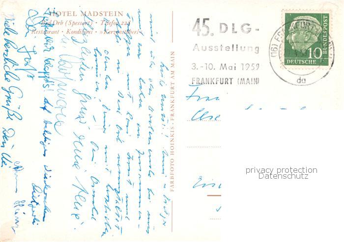 73803614 alte Postkarte Bad Orb Hotel Madstein postalisch gelaufen Erhaltung siehe scans [WerneD78] KatCode: 11110006435001