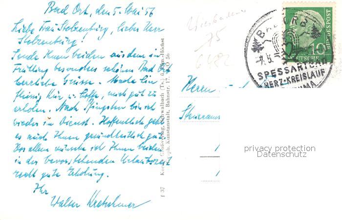 43350367 alte Postkarte Bad Orb Hotel weisses Ross Brunnen Fachwerkhaus postalisch gelaufen Erhaltung siehe scans [FriedD77] KatCode: 11110006435001