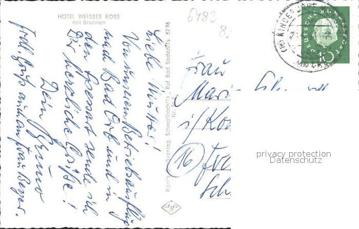 72120902 alte Postkarte Bad Orb Hotel Weisses Ross Dorfbrunnen postalisch gelaufen Erhaltung siehe scans KatCode: 11110006435001