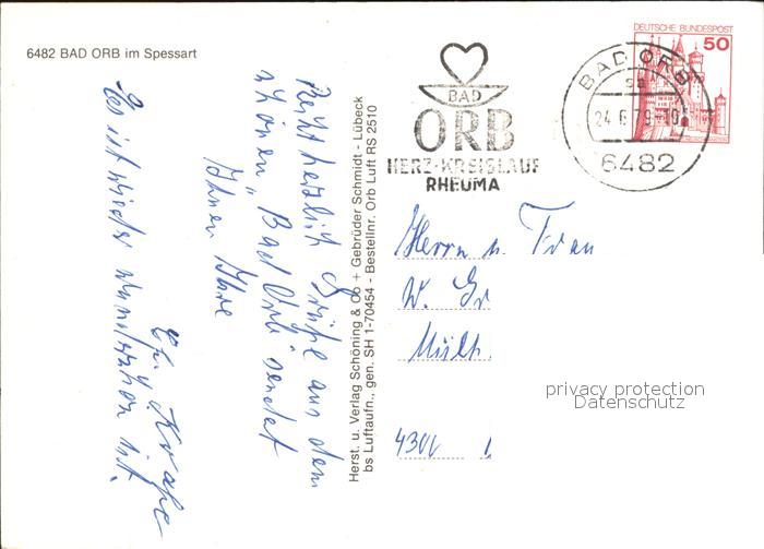 72534093 alte Postkarte Bad Orb im Spessart Fliegeraufnahme postalisch gelaufen Erhaltung siehe scans [FriedD77 kt118box] KatCode: 11110006435001