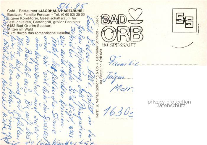 73857593 alte Postkarte Bad Orb Jagdhaus Haselruhe postalisch gelaufen Erhaltung siehe scans [WerneD78] KatCode: 11110006435001
