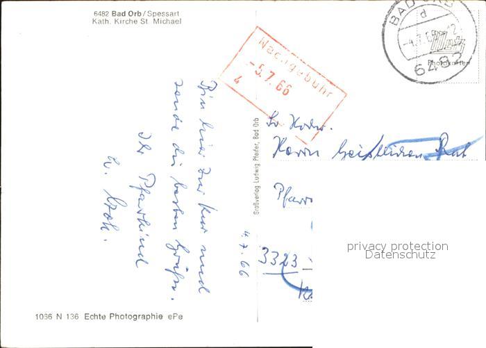 72464492 alte Postkarte Bad Orb Kath Kirche St Michael postalisch gelaufen Erhaltung siehe scans KatCode: 11110006435001