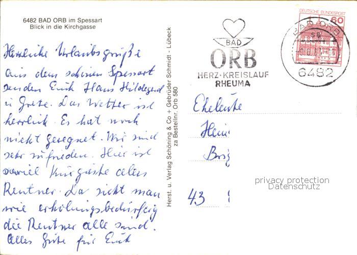 72527254 alte Postkarte Bad Orb Kirchgasse Treppe postalisch gelaufen Erhaltung siehe scans KatCode: 11110006435001