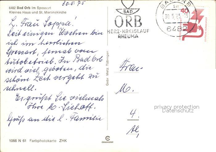 72404669 alte Postkarte Bad Orb Kleines Haus und St. Martinskirche postalisch gelaufen Erhaltung siehe scans KatCode: 11110006435001