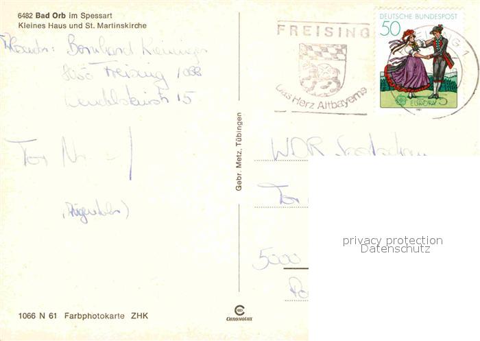 72742365 alte Postkarte Bad Orb Kleines Haus und St Martinskirche postalisch gelaufen Erhaltung siehe scans [FriedD77] KatCode: 11110006435001