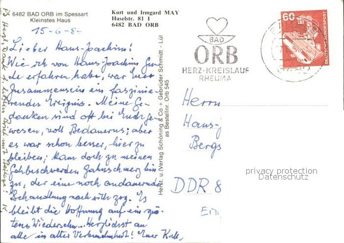 72369861 alte Postkarte Bad Orb Kleinstes Haus postalisch gelaufen Erhaltung siehe scans KatCode: 11110006435001