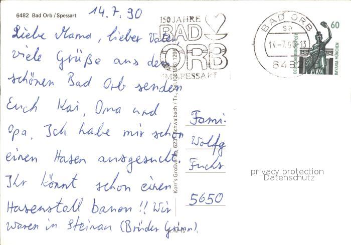 72310506 alte Postkarte Bad Orb Kleinstes Haus Brunnen Philippsquelle Salinenplatz Kurpark Quellenring postalisch gelaufen Erhaltung siehe scans KatCode: 11110006435001