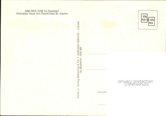 72449287 Bad Orb Kleinstes Haus mit Pfarrkirche St Martin postalisch nicht gelaufen Erhaltung siehe scans KatCode: 11110006435001