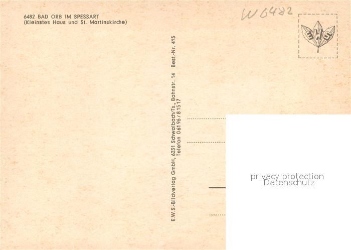 73115272 Bad Orb Kleinstes Haus St. Martinskirche postalisch nicht gelaufen Erhaltung siehe scans [NatalD47] KatCode: 11110006435001