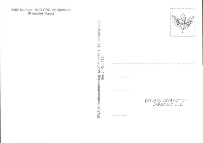 72578246 Bad Orb Kleinstes Haus postalisch nicht gelaufen Erhaltung siehe scans [AndreD76] KatCode: 11110006435001