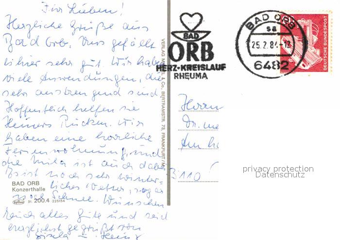 72741843 alte Postkarte Bad Orb Konzerthalle postalisch gelaufen Erhaltung siehe scans [WerneD78] KatCode: 11110006435001