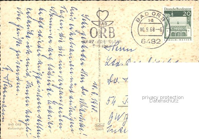 72469485 alte Postkarte Bad Orb Konzerthalle postalisch gelaufen Erhaltung siehe scans KatCode: 11110006435001