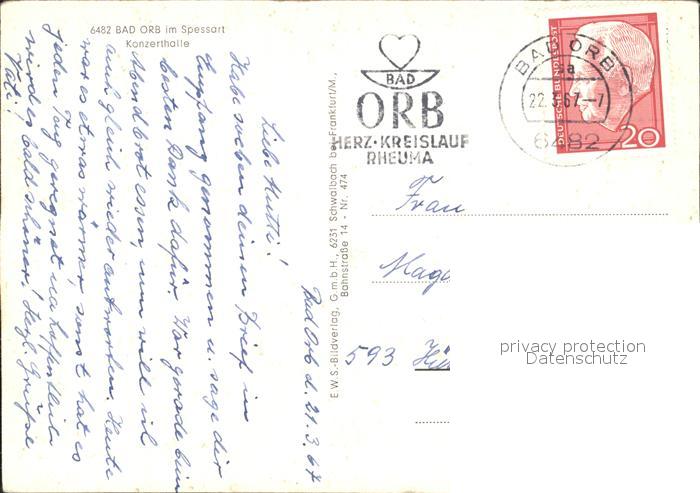 72306491 alte Postkarte Bad Orb Konzerthalle postalisch gelaufen Erhaltung siehe scans KatCode: 11110006435001