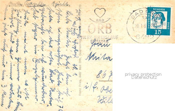 73301165 alte Postkarte Bad Orb Konzerthalle postalisch gelaufen Erhaltung siehe scans [PaolaD17] KatCode: 11110006435001