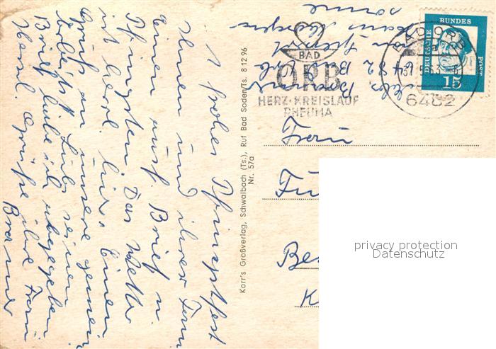 72929065 alte Postkarte Bad Orb Konzerthalle Aussichtsturm Sanatorium Kueppelsmuehle Marktplatz Kuranlagen postalisch gelaufen Erhaltung siehe scans [AndreD76] KatCode: 11110006435001