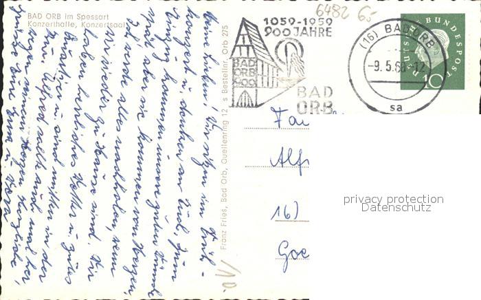 72120751 alte Postkarte Bad Orb Konzerthalle Konzertsaal postalisch gelaufen Erhaltung siehe scans KatCode: 11110006435001