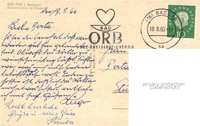 72776368 alte Postkarte Bad Orb Konzerthalle Kurpark postalisch gelaufen Erhaltung siehe scans [NatalD47] KatCode: 11110006435001