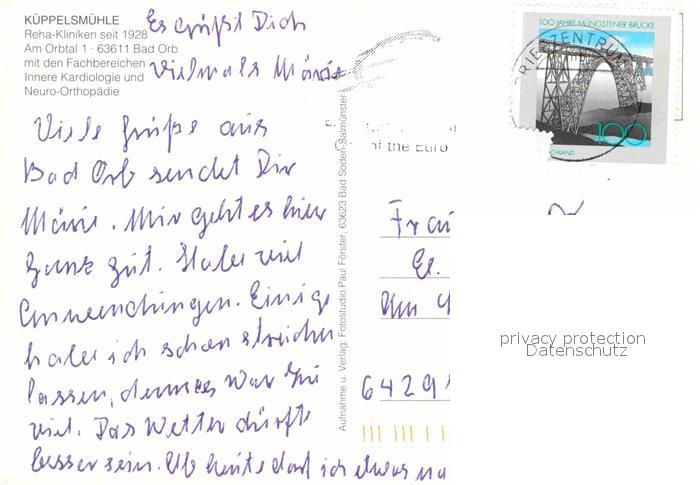 72904243 alte Postkarte Bad Orb Kueppelsmuehle postalisch gelaufen Erhaltung siehe scans [NatalD47] KatCode: 11110006435001