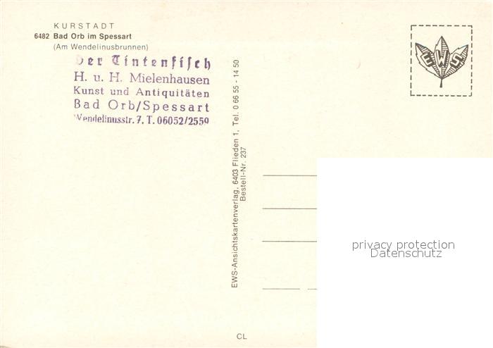 73745127 alte Postkarte Bad Orb Kunst und Antiquitaetenhaus Der Tintenfisch mit Wendelinusbrunnen postalisch gelaufen Erhaltung siehe scans [WerneD78] KatCode: 11110006435001