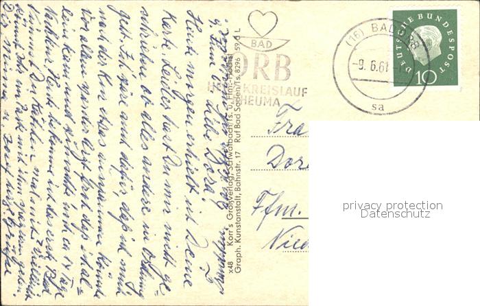 72445809 alte Postkarte Bad Orb Kuranlagen Saline Konzerthalle Schwanenteich Kurgarten Fontaene postalisch gelaufen Erhaltung siehe scans KatCode: 11110006435001