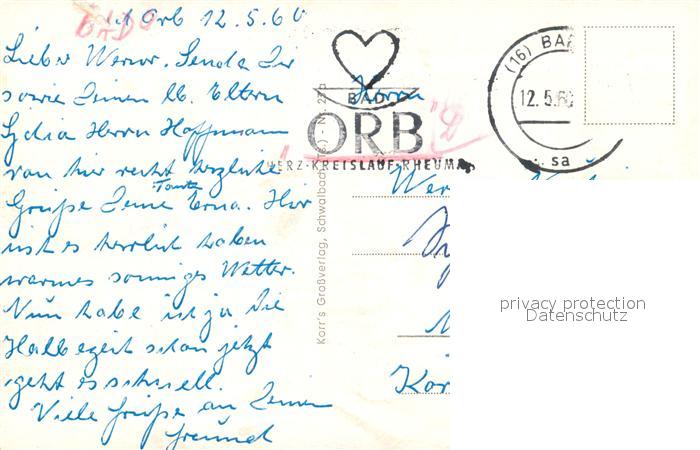 73107903 alte Postkarte Bad Orb Kurhaus postalisch gelaufen Erhaltung siehe scans [WerneD78] KatCode: 11110006435001