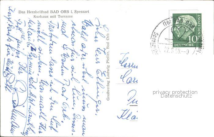 72460927 alte Postkarte Bad Orb Kurhaus mit Terrasse Heilbad im Spessart postalisch gelaufen Erhaltung siehe scans KatCode: 11110006435001