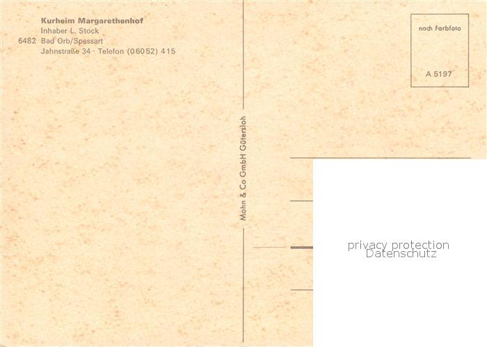 73016440 Bad Orb Kurheim Margarthenhof postalisch nicht gelaufen Erhaltung siehe scans [NatalD47] KatCode: 11110006435001