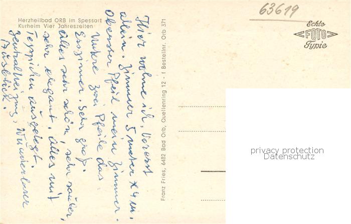 73763189 Bad Orb Kurheim Vier Jahreszeiten postalisch nicht gelaufen Erhaltung siehe scans [WerneD78] KatCode: 11110006435001