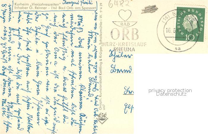 73706353 alte Postkarte Bad Orb Kurheim Vierjahreszeiten Aussenansicht postalisch gelaufen Erhaltung siehe scans [LiesaD40] KatCode: 11110006435001