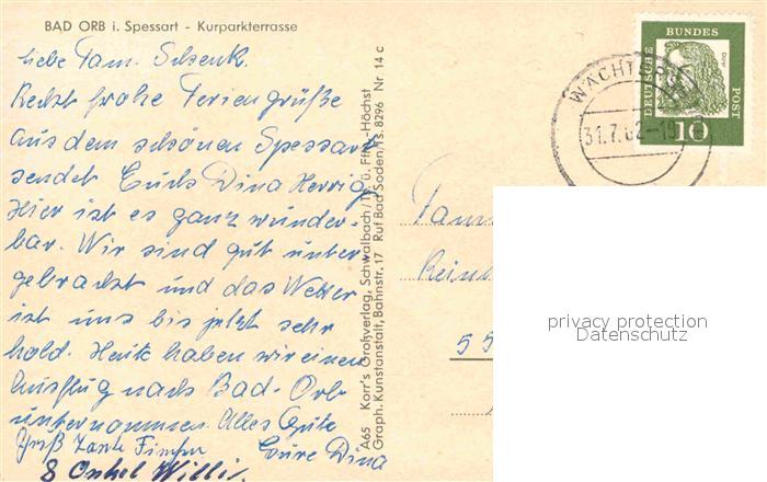 72907123 alte Postkarte Bad Orb Kurparkterrasse postalisch gelaufen Erhaltung siehe scans [NatalD47] KatCode: 11110006435001