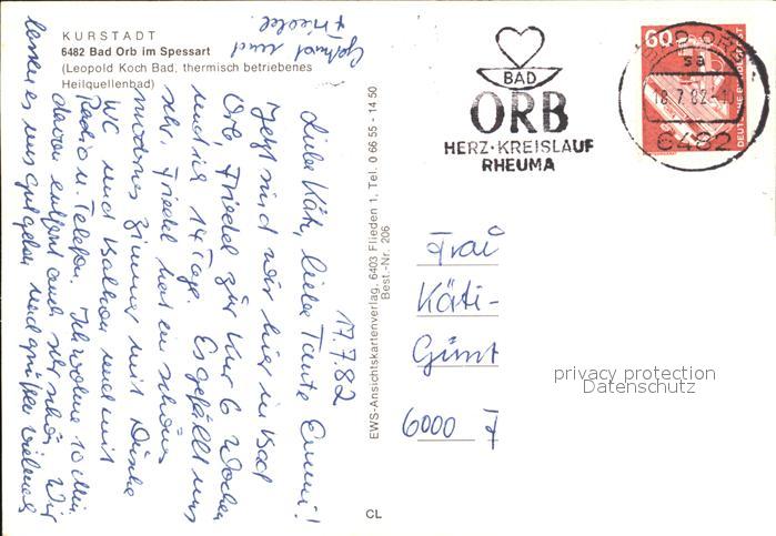 72483580 alte Postkarte Bad Orb Leopold Koch Thermal Bad postalisch gelaufen Erhaltung siehe scans KatCode: 11110006435001